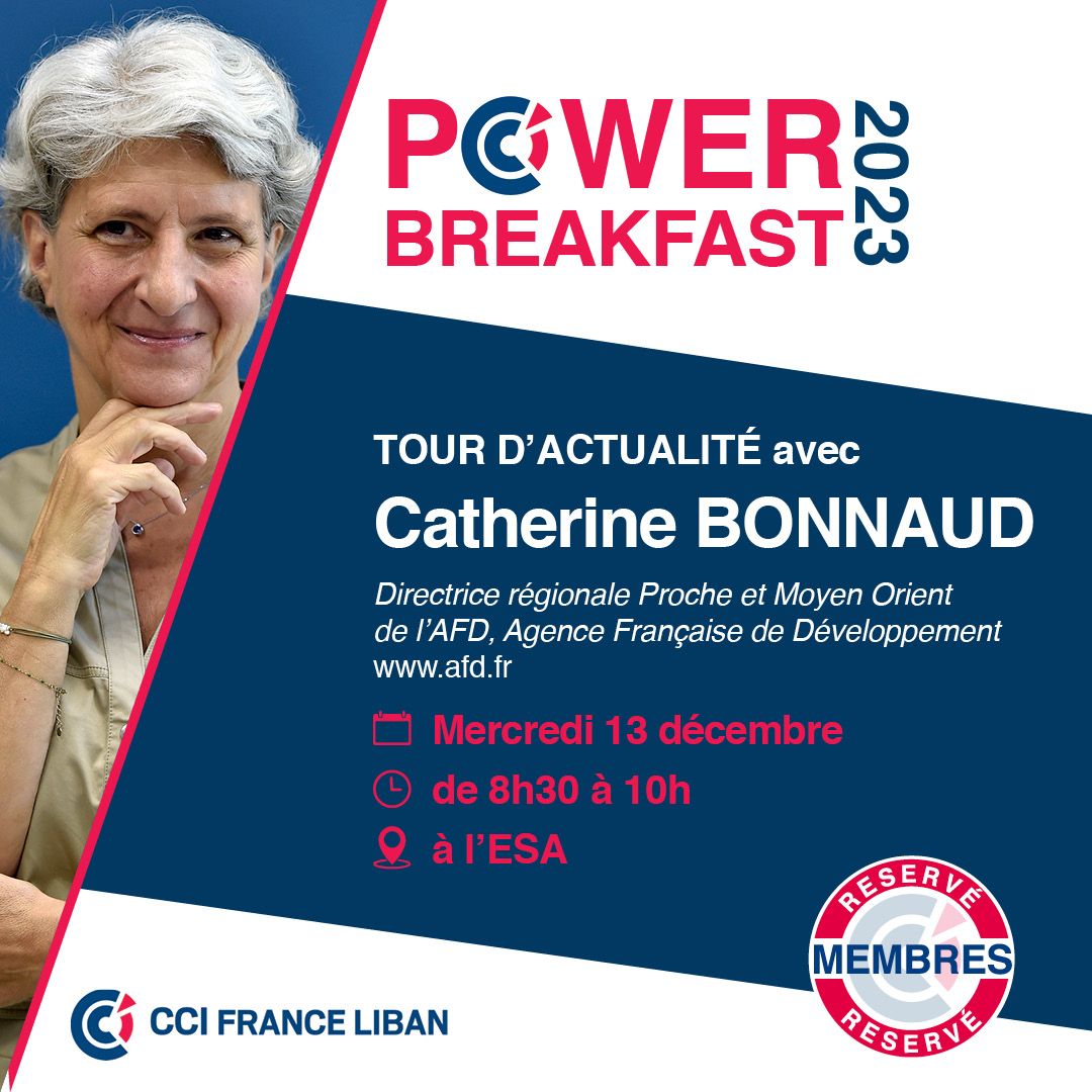 Le Power Breakfast est un nouveau concept mensuel de la CCI France Liban, en partenariat avec le SER de l’Ambassade de France au Liban, conçu pour offrir à ses membres une opportunité unique de rencontrer des personnalités influentes du monde économique et des affaires.